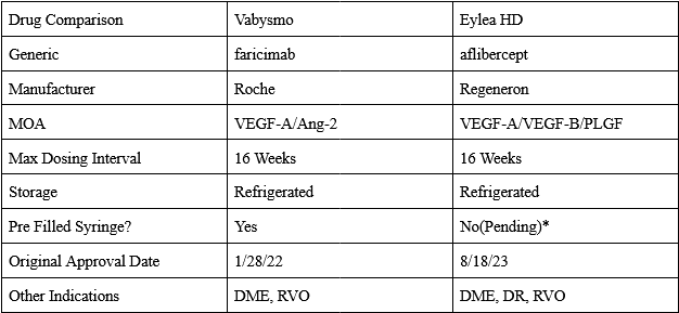 Same treatment regimen between drugs. (the Vabysmo review calls this out)