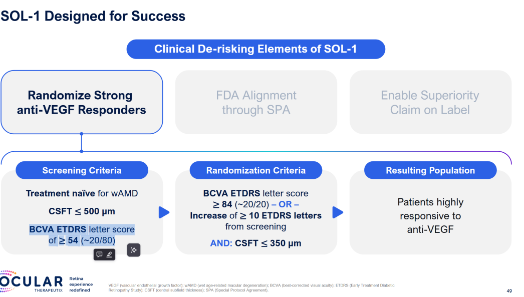 Ocular enrolled 344 patients, and in March 2025, extended the blinded period out to 1 year to enable redosing and shrink the other pivotal SOL-R study. More patients, more safety data. Data for SOL-1 is expected in February