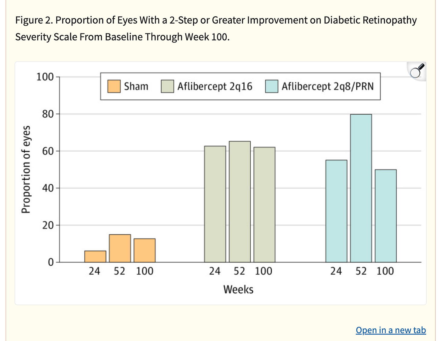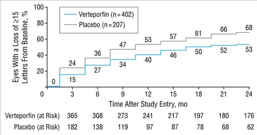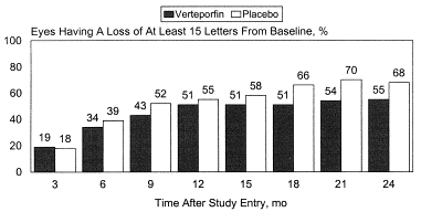 If you look at the actual curve, ~50% and 34% of placebo and verteporfin lose 15 letters.