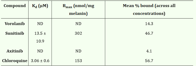 Note: Axitinib and Vorolanib don’t bind melanin.