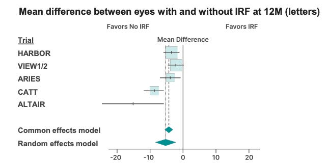 Furthermore, SOL-R is enrolling patients without persistent fluid after Eylea. Those patients will screen fail. Consistently across trials, patients with no IRF do better.
