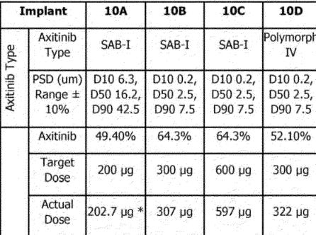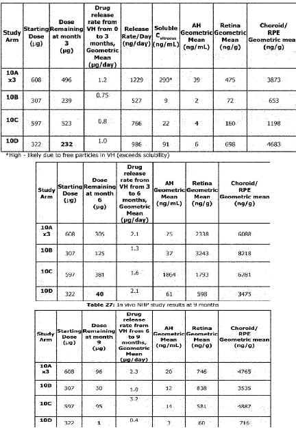Initial PK results. These results are NOT the same as the one used in the final Ph3. Ocular developed a NEW implant (Form IV in their patents) with a different, more consistent release profile. A few notes before the patent data.