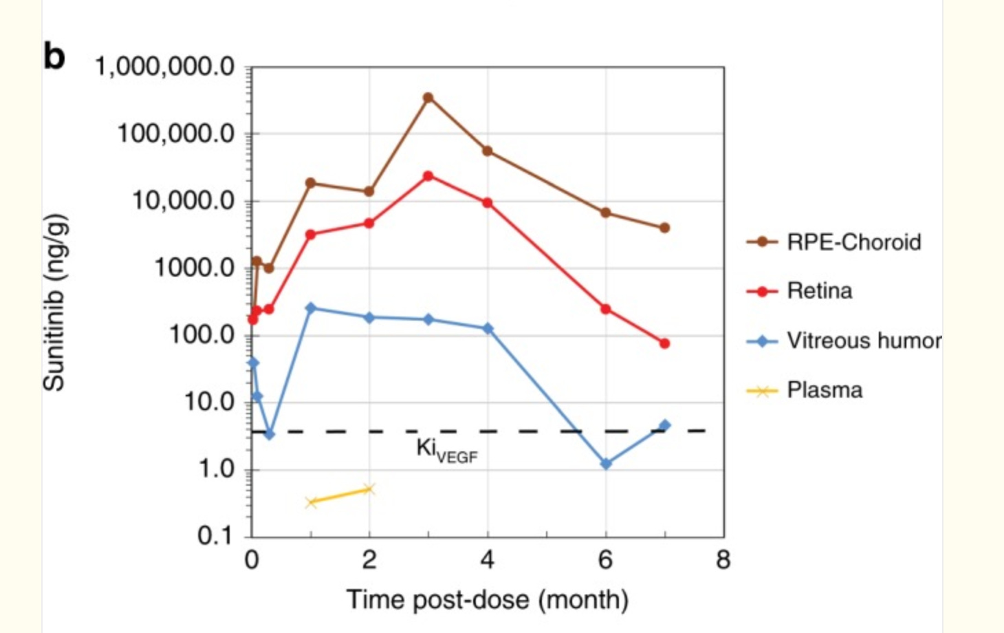 The idea behind it is to inject a massive amount of axitinib crystal into the SCS, with the elevated pressure from the injection helping to push some of the crystal into surrounding tissues. The crystal dissolves over time allowing for free drug to act on VEGF receptors. This method seems to lead to quite a lot of randomness. In wAMD there is a degree of difference between patients when it comes to RPE structure and permeability so the diffusion of drug can impact local concentrations. I have a hunch (and no I’m not opening consol to model it) that the local concentrations vary even if total concentrations are high. Since SCS injections are much less common than IVT injections, any imperfections aren’t tolerated.