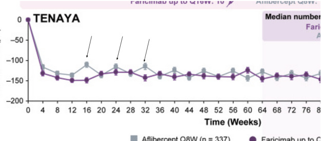 Those who needed more frequent dosing had a lower visual response to the initial doses to anti-VEGF. The PK of faricimab extends out to~12 weeks so the Q16 dosing must mean these patients don’t require active VEGF suppression!