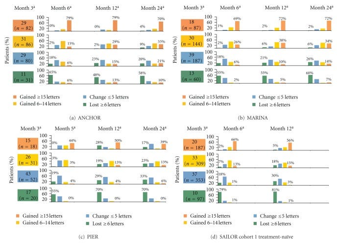We are selecting for patients who initially improved in vision. The true baseline for these patients is not at month 1 post 2 injection Eylea. It’s at month -2, before the eylea injections.