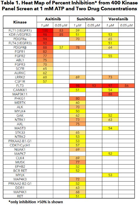 There has been some discussion about how the axitinib based drugs did not match the efficacy of bevacizumab in this test, it is important to put into perspective that: